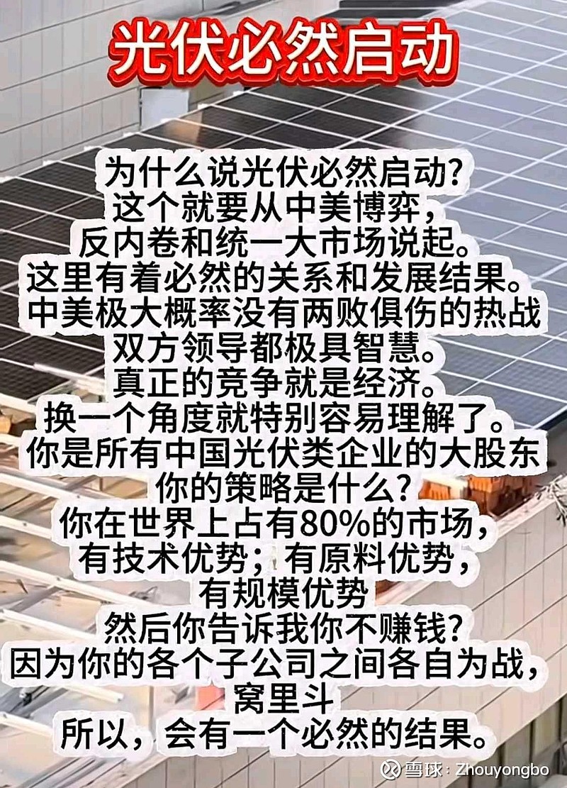 核心观点是:2026核心逻辑“涨价”;光伏行业的“必然启动”,是中美博弈、国内反内卷和统一大市场三大因素共同作用下的必然结果,本质是从“窝里斗”的恶性竞争,走向“全球定价权”的价值回归。光伏 行业经历了长期深度调整,当前估值处于历史低位,一旦盈利修复,弹性巨大。2026年关键词“涨价”;2026年光伏关键词“涨价”。2026的光伏板块的宇邦新材有机会重演2025商业航天斯瑞新材。2026.2.27 0:48 留笔