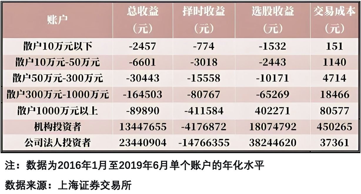 这张上交所的数据图我珍藏多年。2016-2019年期间,所有资金规模的个人投资者平均收益全军覆没,而机构投资者却人均赚走1344万。更讽刺的是,2014-2015年大牛市里,散户亏得比熊市还惨。就像现在海南华铁的散户们,明明看着36亿大利好杀进去,结果等来的是一字跌停。