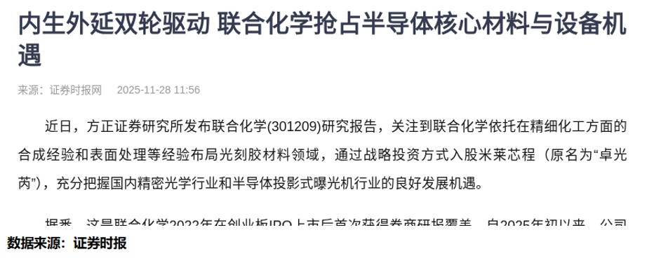说回联合化学这家公司。他们投资的那家米莱芯程半导体可有意思了——60%员工是硕士以上学历,还有ASML的前员工。这种公司要是放在五年前,股价早就飞天了。但现在市场变聪明了,光有故事不行,还得看真本事。