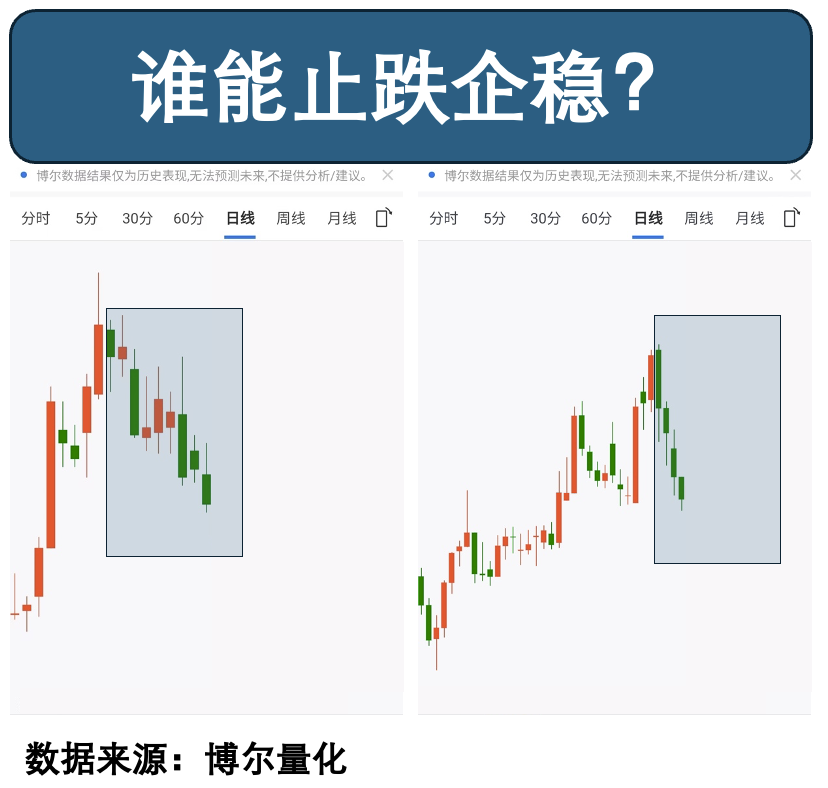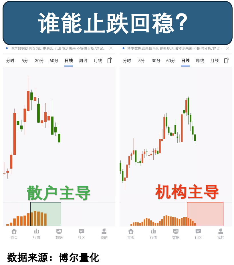 这两只股票都在调整,看起来都很惨对不对?但用我们量化系统的"机构库存"数据一看,故事就完全不一样了: