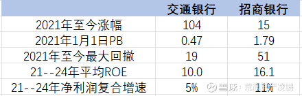 我们再看一个案例,就是2021年至今交行和招行的表现。数据如下表所示:
