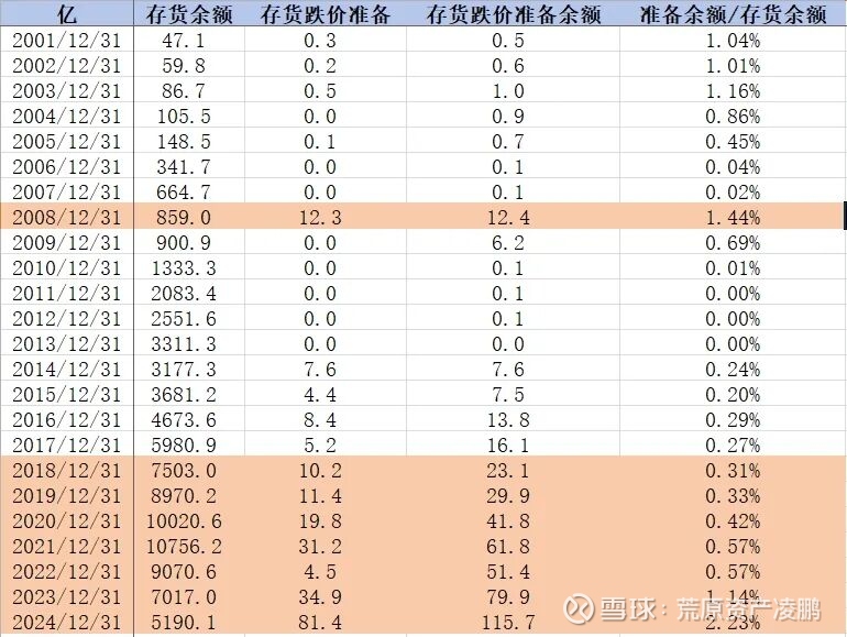 上表记录了万科2001年以来每年的存货余额、当年计提存货跌价准备、当年存货跌价准备余额,我们发现两点:⑴2017年之前很少计提存货跌价准备,只在2008年计提了12.3亿。实际上这不是万科的个例,而是整个行业的普遍状态,因为在房价、地价不断向上的年代,这种“未雨绸缪”似乎只是“杞人忧天”;⑵拨备明显不足。像银行地产这类高杠杆行业,计提减值损失本该是常态,但地产由于长期处于盛世拨备明显不足。我们把存货跌价准备余额除以存货余额作为地产的拨备,万科大部分的年份不到1%、甚至低于0.5%。只在最近几年有所提升,而这大大消耗了净利润、甚至造成巨额亏损。