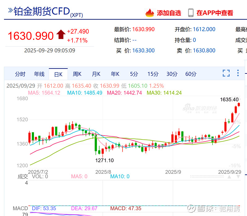 $贵研铂业(SH600459)$ $浩通科技(SZ301026)$ 9月29日,铂金期货报价突破1620美元/盎司,创近十年新高和年内新高,2025年涨幅超过77%