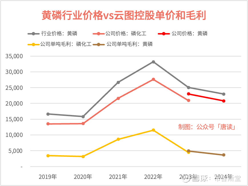 公司历年业绩里,黄磷的单价和单吨毛利,都是跟着行业价格走的,同涨同跌,很有规律。