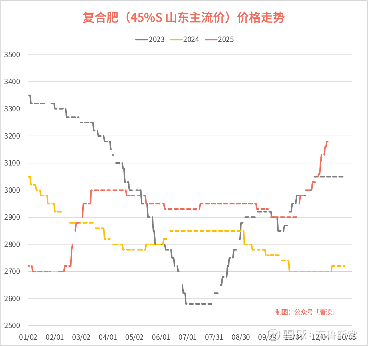 说明一下,复合肥的价格不同口径是不同的。但是我们重点是看价格的同比变动趋势,所以 45%S 的主流价格是可以作为参考的。