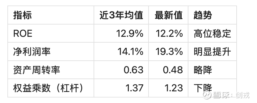 ROE 的改善主要来自利润率,而不是杠杆。 2025Q3 净利率已到约 19.3%,而权益乘数降到 1.23,这是真正的好信号。