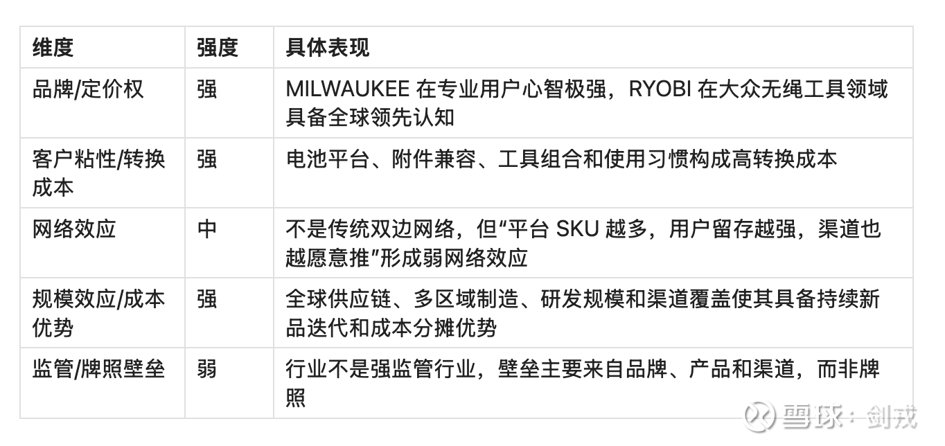 我认为市场给创科比泉峰、Stanley 更高的估值,是合理的,因为它不是普通工具制造商,而是: