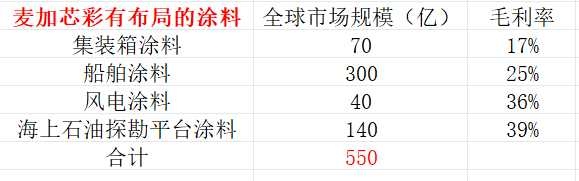 下面图片是麦加芯彩有布局的涂料市场空间,下面这些领域,相比于目前公司的主营集装箱业务,市场空间和毛利率都比较高。如果公司好好经营,未来公司业绩潜力还是很大的。