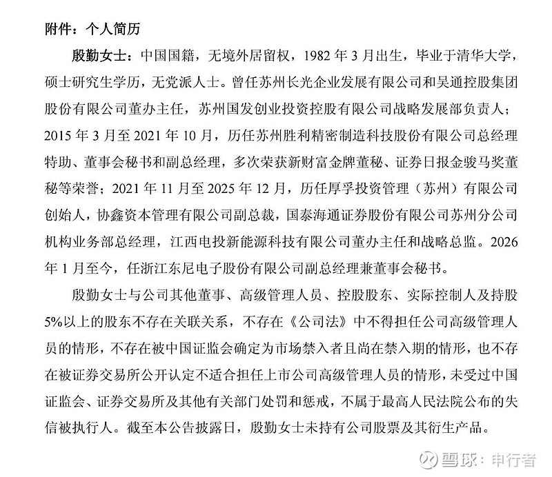 $ST东尼(SH603595)$ 盼星星盼月亮,东尼总算是有动作了,清华大学高材生,新董秘的履历非常亮眼,现阶段的东尼急需战投融资支持,基本盘消费电子很稳定,新能源爆发式增长,碳化硅还在投入期,技术、人员、经验已经足够,万事俱备,只等东风!