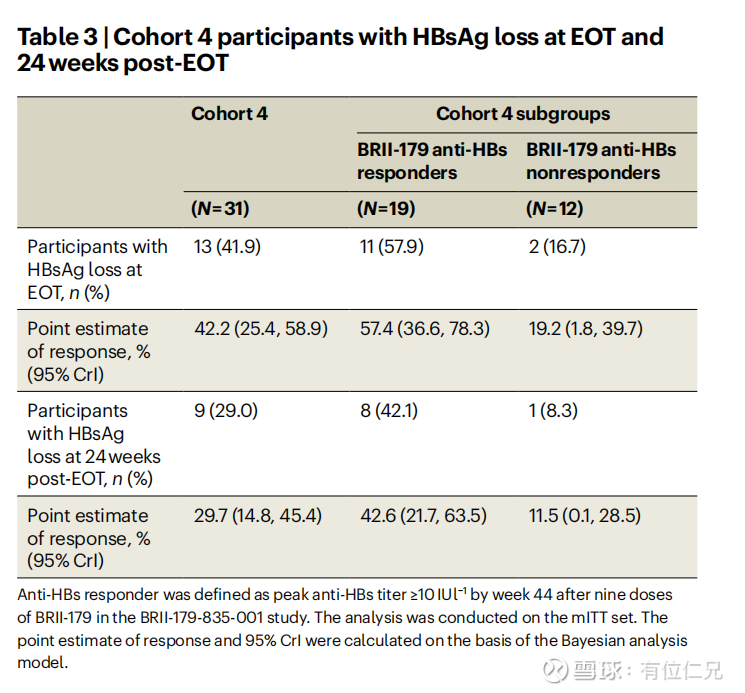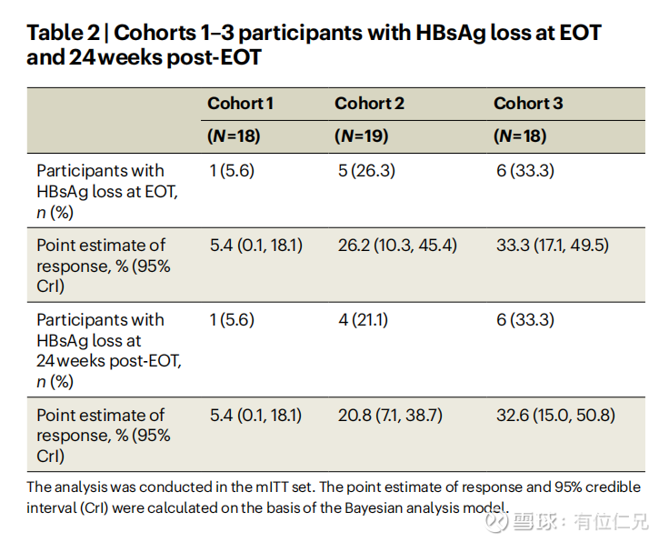 ensure队列2-3的治愈率比vir公司在2022年做的试验要高,停药复阳率远低于vir公司,原因在于腾盛博药纳入试验组的患者基线更低,且小三阳的比例更高。队列4停药时,高免疫反应组的转阴率为57.9%,停药后半年的转阴率为42.1%,近7成的人保持转阴,这一水平稍低于预期,但与2023年的数据接近。