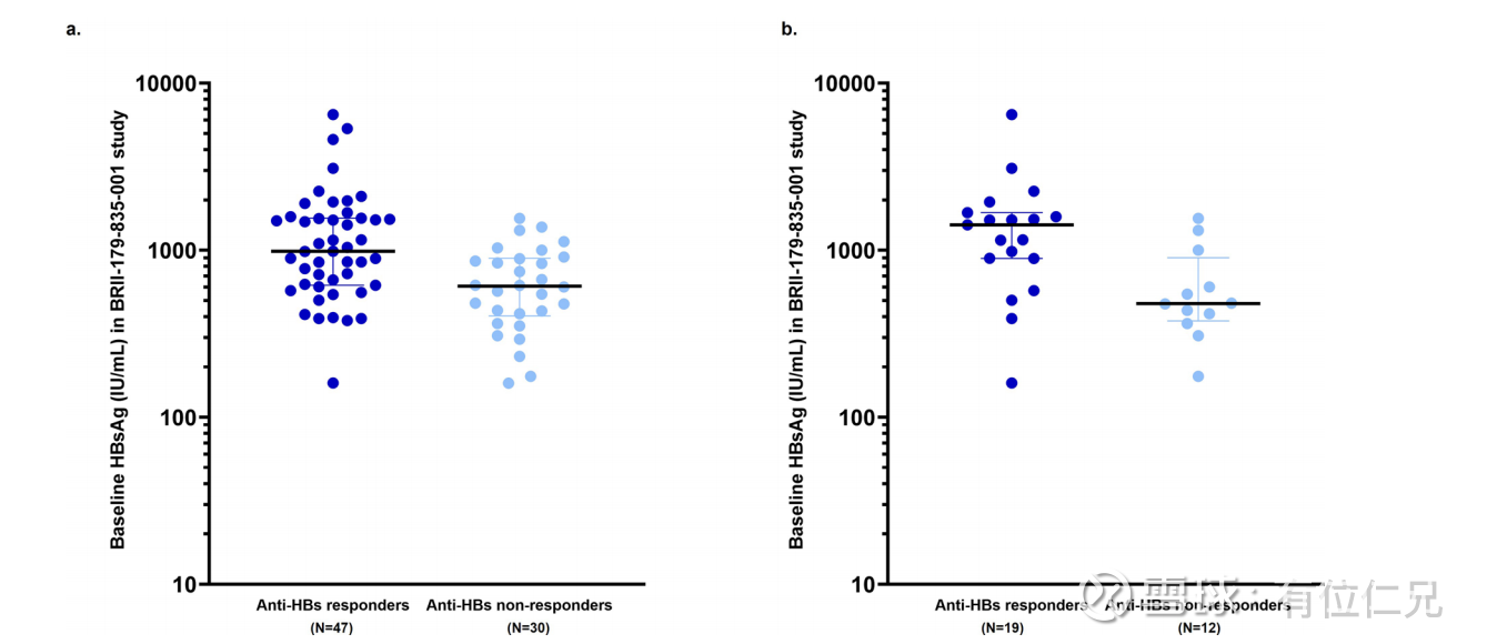更为可喜的是,在高免疫反应组停药后半年后仍保持转阴的8名患者中,50%患者在进入BRII-835-179-001试验的抗原基线高于1500 IU/ml,意味着只要患者能产生免疫反应,高基线也存在被治愈的可能。反观队列1-3,抗原基线高于1500 IU/ml的患者全部无法被治愈,这再度验证调节免疫系统是乙肝功能性治愈的关键。