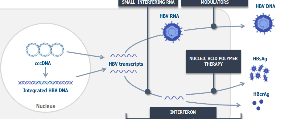 Precision BioSciences:基因编辑药物作为人类第一种直接靶向cccDNA的药物,有取代siRNA、ASO成为乙肝疗法基石的潜力。十年后的疗法很有可能是通过基因编辑清除cccDNA,用干扰素或治疗性疫苗清除残余的乙肝整合DNA,试验仍在早期,具体疗效还需持续观察。