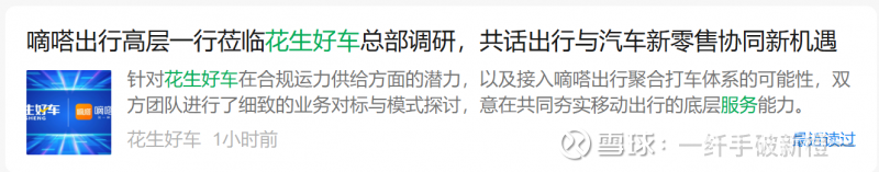 投资界12月1日消息 11月28日,花生好车官微一句话直接把桌子掀了——官宣嘀嗒高层实地访问、周四闭门会谈、三大维度实质合作! 原来的"资本绯闻"升级为"官方实锤"。