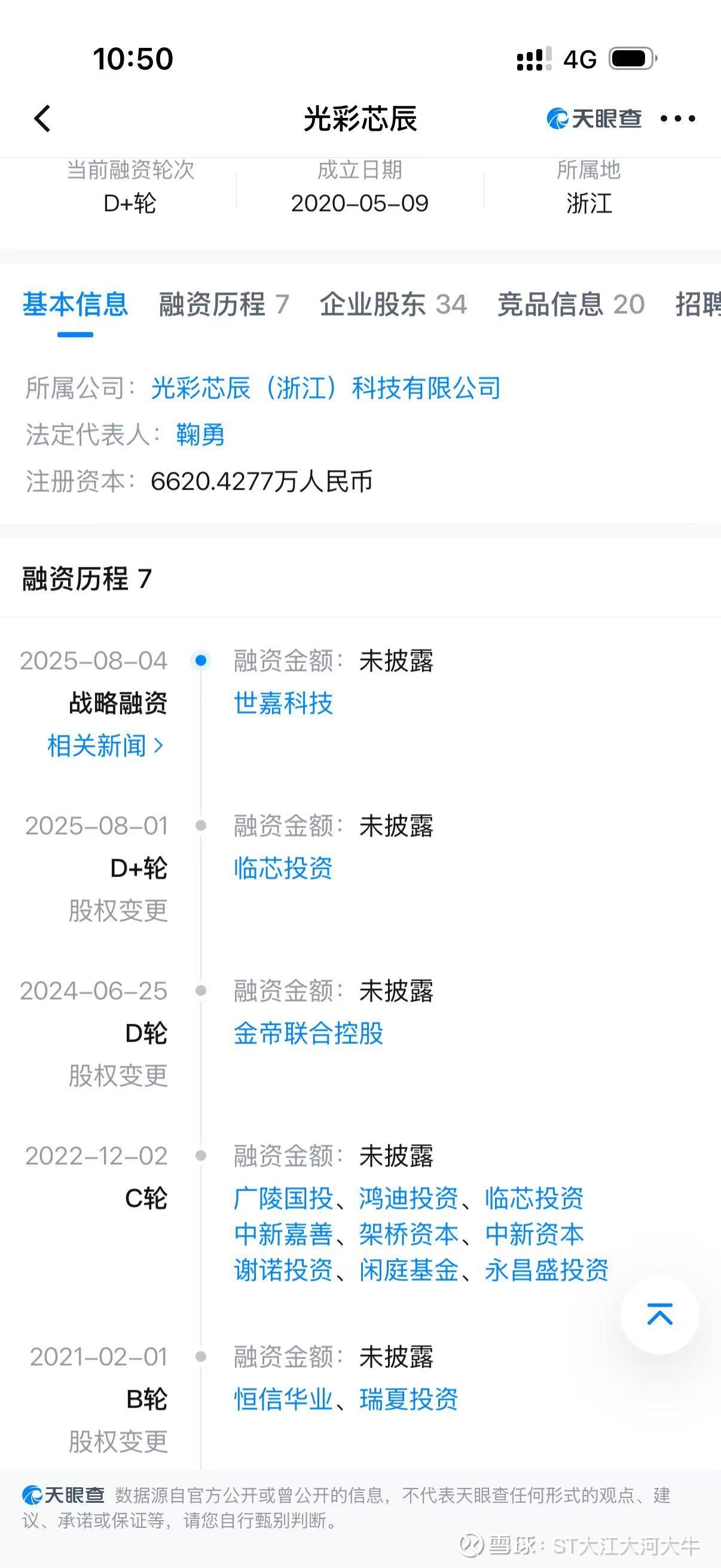 世嘉科技的股价涨涨跌跌,庄家的砸盘和拉升,包括大V的摇旗呐喊和打call,都是围绕着光彩芯辰的增资扩股的进程。个人认为这次世嘉科技的增资扩股应该是晚于金帝集团的增资扩股,最后比例会更低,只是战略投资者的比例。请看世嘉科技2025年8月4日的投资意向公告,当时的公告对于光彩芯辰的股东罗列是这样的,金帝联合控股集团有限公司是第四大股东,持股比例4.8485%: