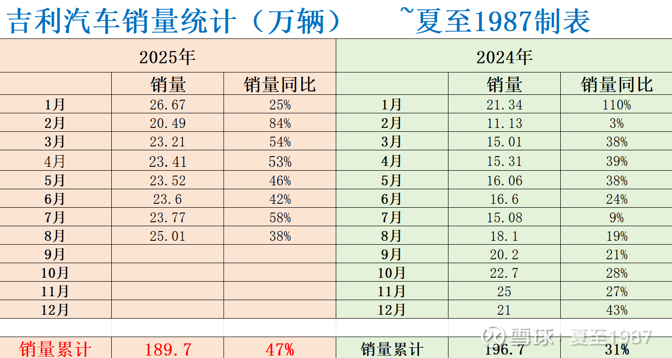 8月销量25.01万辆,同比增长38%,今年累计销量.189万辆,同比增速来到47%,都是非常亮眼的表现。