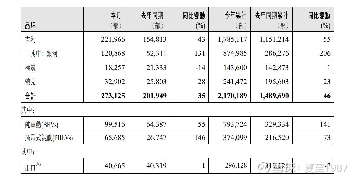 但最重要的当然还是总销量数据,我觉得吉利没什么问题,增长动能是传统车企中最强的,估值是最低的。