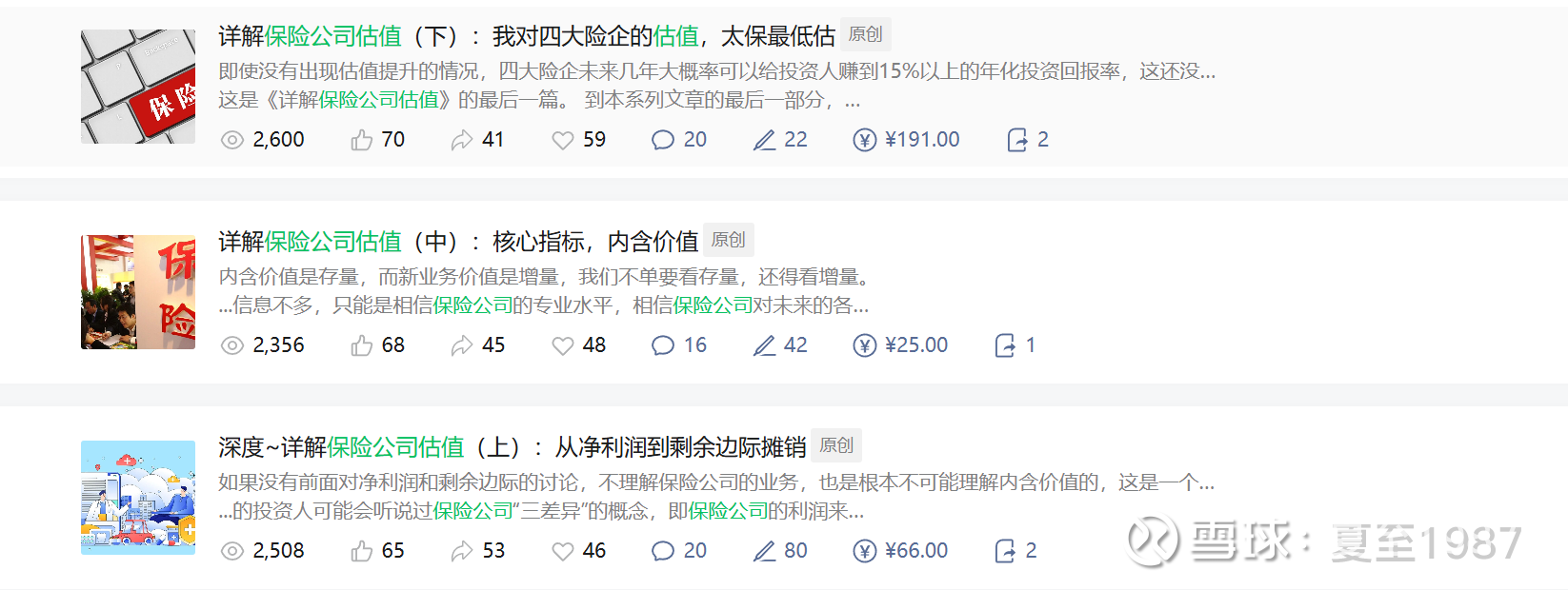 对于内含价值EV的学习,保险公司如何估算自己的EV,以及如何使用PEV-REOV估值体系去对不同的保险公司进行估值,可以直接参考我之前写的3篇深度内容: