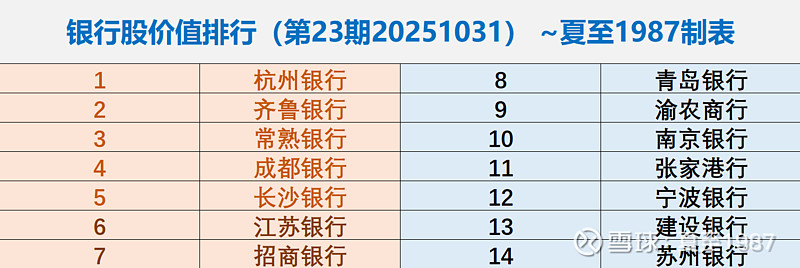 最后给榜单吧,银行股价值排行榜第23期: