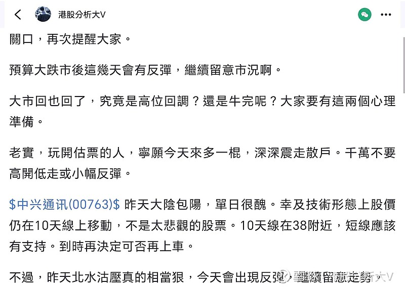 $中兴通讯(00763)$ 如我所說,不用太悲觀,隨時可以再上車。剛剛沽了手上的4600股,賺了1W