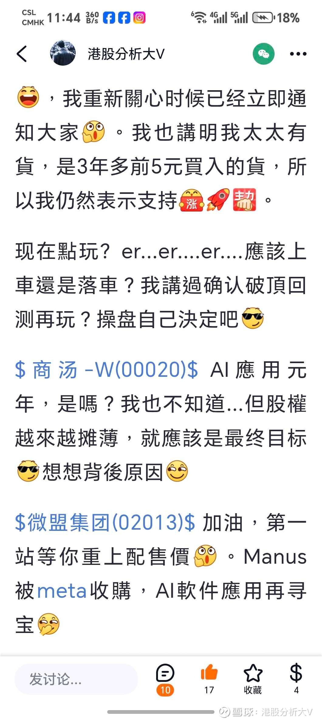 2025年12月18日回覆大家提問,對$微盟集团(02013)$ 觀點及操作方法,寫得清清楚楚,20-50%回報,今天算是驚喜,恭喜大家。記得後一天有人出post抽水,如今應該吃