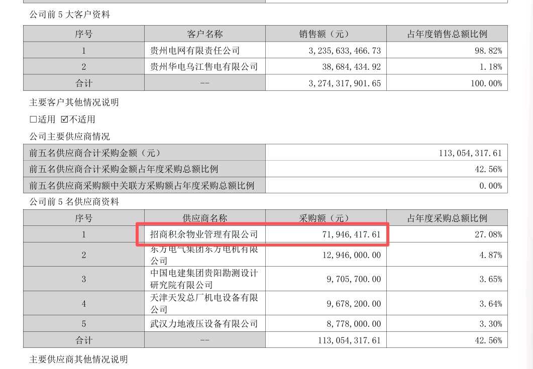 招商积余是央企控股全国知名物业公司,黔源电力作为央企控股贵州水电企业,采购招商积余的服务,那么应该是物业服务,但是问题来了,物业费7000多万?按照这个算,规模是黔源电力几十倍的长江电力物业费不得数十亿?有没有熟悉水电或是物业服务的朋友科普一下。我不是很明白物业费咋这样贵。当然一般物业企业也进不去查看图片