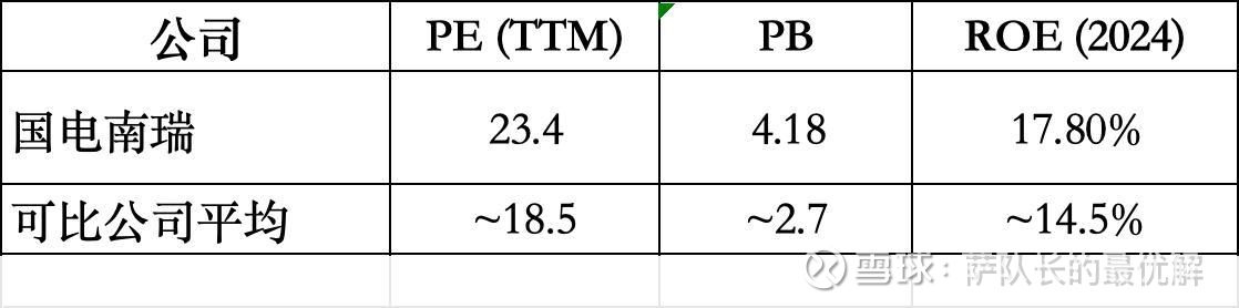 国电南瑞享有明显的估值溢价(PE溢价约26%)。这部分溢价由其更高的ROE、更稳固的龙头地位和更优质的现金流所解释,是合理的品牌和质量溢价。然而,溢价本身也意味着,从相对估值角度看,它已经不再“便宜”。