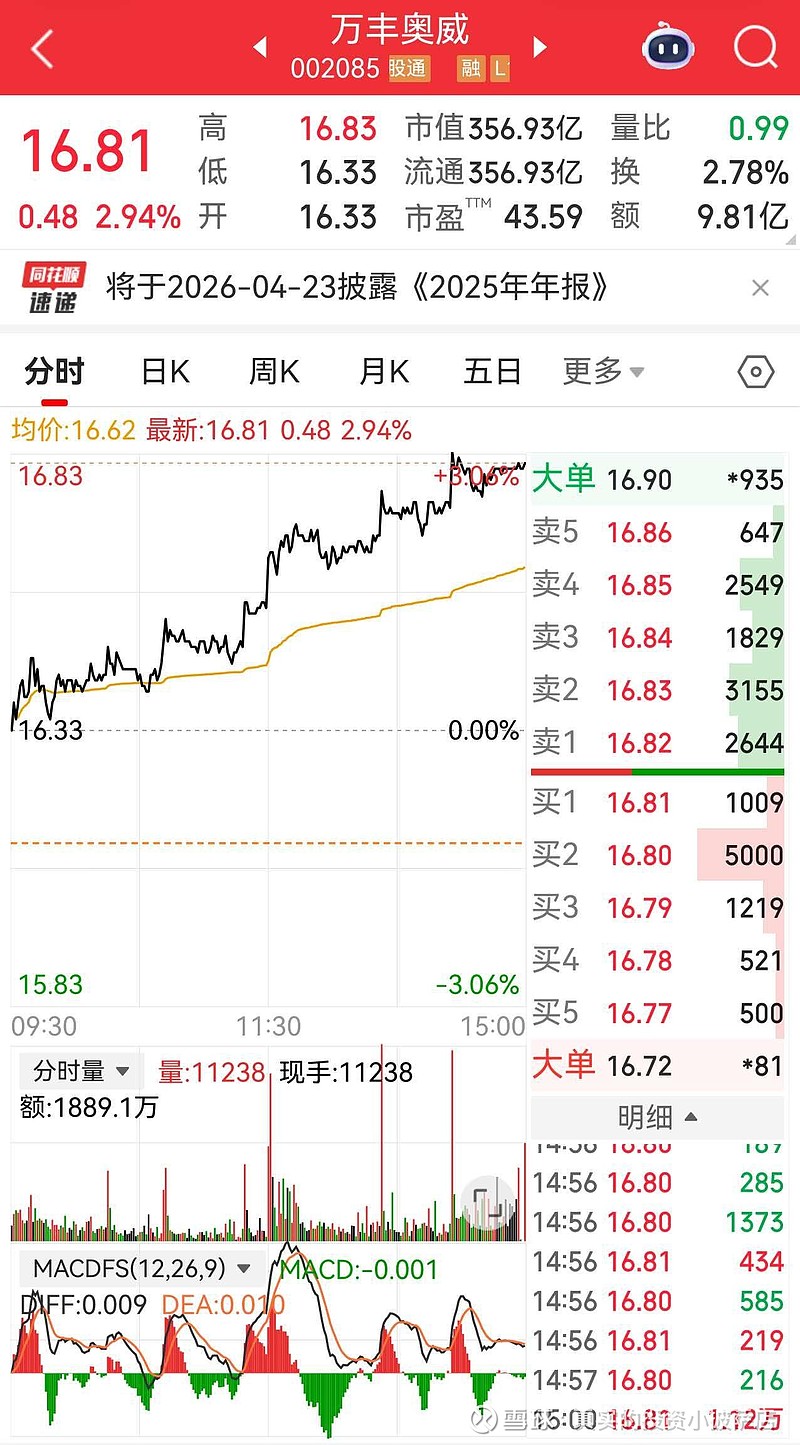 补充备注:当日分时图呈现单边上行走势,开盘后持续冲高,均价线跟随股价同步上行,成交量平稳,属于典型的单边上涨行情。