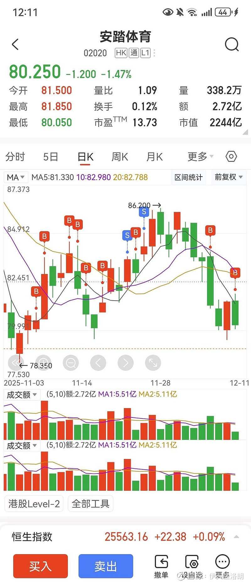 $安踏体育(02020)$