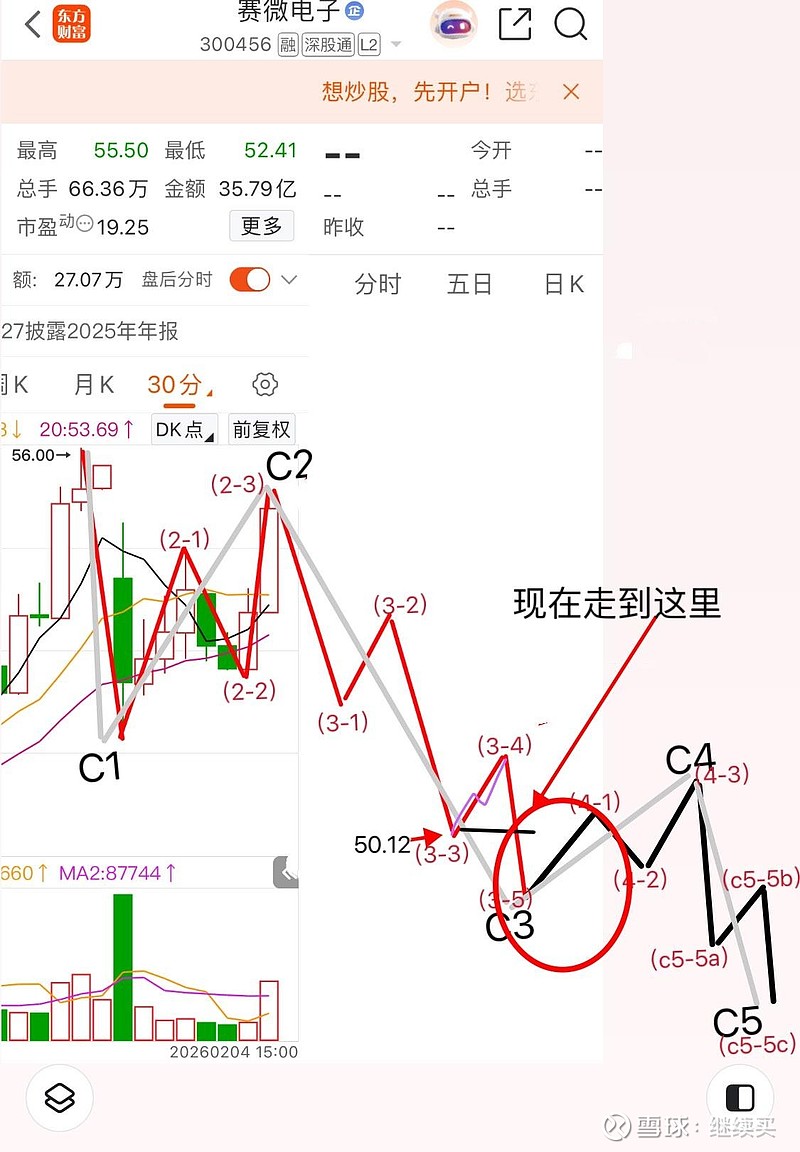 #赛微电子# 下周一30分钟级别大深V反弹开启C4段一笔123中枢结构!周一开盘继续下探跌破50元完成(3-5)走势底,预计下周一10:30后反弹开始,下周一收盘价在全天最高点;分时图像耐克图标的大V形态;今天尾盘被洗出去的拍断大腿吧!(下周一V形下图圆圈位置)