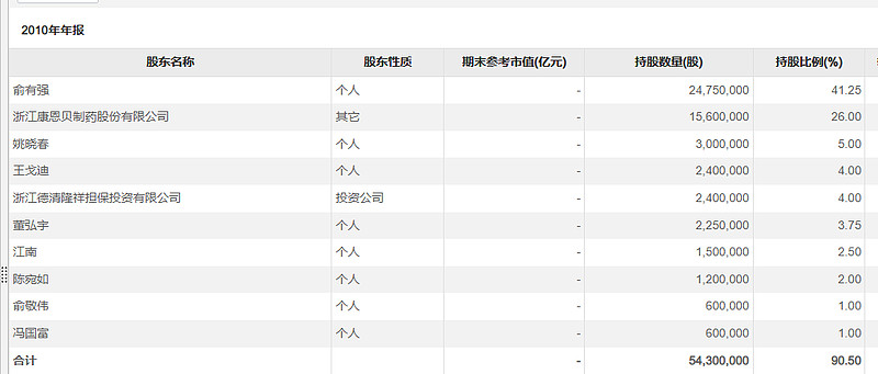 上图:佐力药业2011年首发上市的股东,除了实际控制人俞有强,还有乌灵胶囊研发的头号功臣陈宛如教授和她的儿子董弘宇。