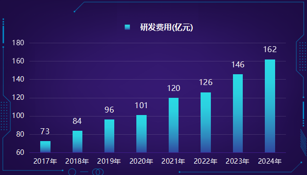 美的在研发上的投入可谓不遗余力。数据显示,公司近十年累计研发投入已超过1000亿元人民币。仅在2024年,研发投入就高达162.33亿元,同比增长超过10%。在2022年至2024年的三年间,研发总投入合计超过430亿元 。这一投入规模不仅在家电行业首屈一指,甚至在全球制造业中也名列前茅。这些资金被投向了人工智能、芯片、新材料、机器人核心部件、储能技术等前沿领域,为新业务的孵化和发展提供了源源不断的动力。