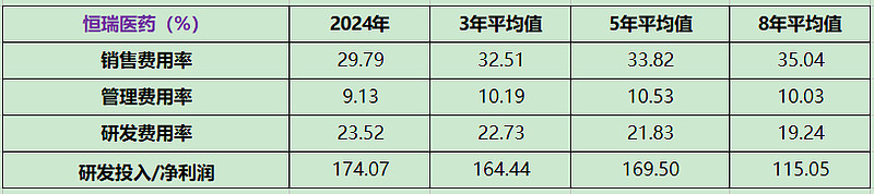 恒瑞医药采用 "压强式投入" 策略,研发投入强度行业领先。从研发投入的绝对值看,恒瑞医药 2024 年研发投入超104亿元,占营收 37.2%,近几年每年研发投入占销售收入的比重均在 30% 以上。