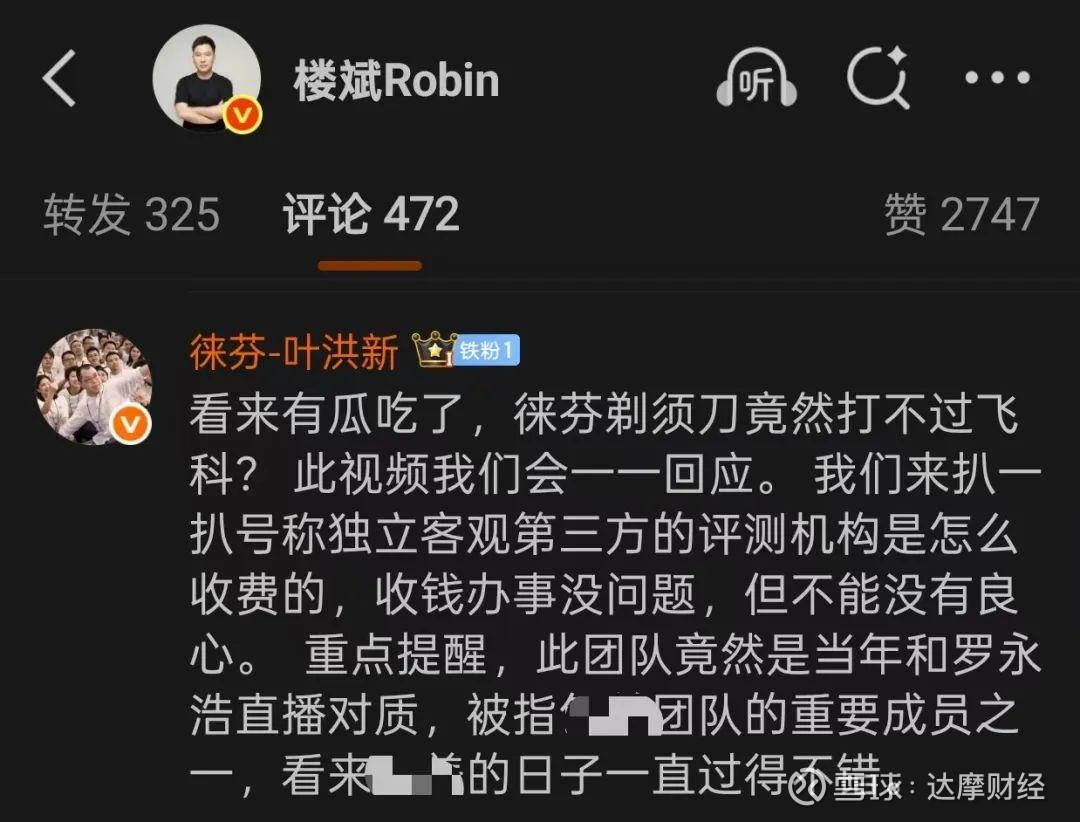 此次事件起源于8月15日。当天,微博数码大V楼斌发布了一则测评视频,对飞科、徕芬、松下、博朗、飞利浦等多个品牌的进行测评,并质疑“徕芬剃须刀竟然打不过飞科”。这则内容迅速引发了舆论关注,徕芬创始人叶洪新也作出回应称,“收钱办事没问题,但不能没有良心”。