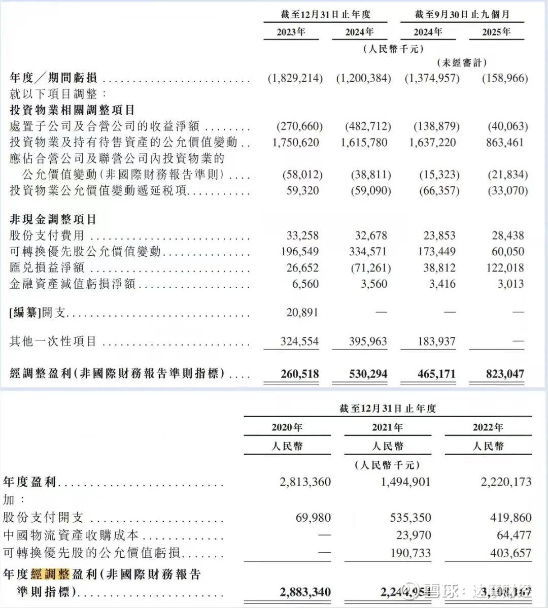 2023年递表时,京东产发持有的资产正值增值期,因此2020年至2022年公司利润大增,如2020年,公司营收为5.82亿元,同期净利润高达28.13亿元。不过,彼时公司在调整利润时,仅剔除了股份支付费用、收购中国物流资产成本等项目,并未调减投资物业公允价值变动带来的利润提升。若按2023年递表时的口径计算,京东产发报告期内的经调整净利润水平将有所缩水。