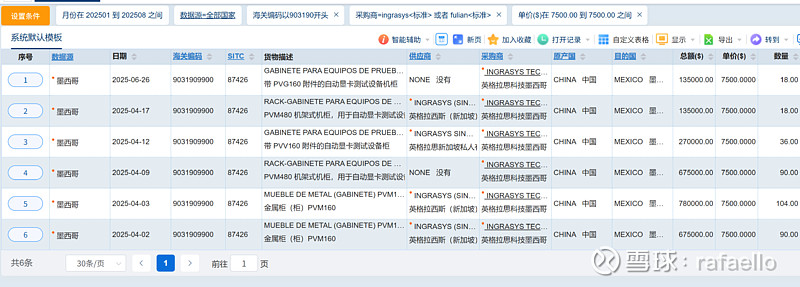 另外,因为q3在一神的支持下升级到了国内最贵的环球平台。我重新查询一遍发往墨西哥的GABINETE PARA EQUIPOS DE PRUEBAS AUTOMATICOS DE TARJETAS GRAFICAS CON ACCESORIOS。