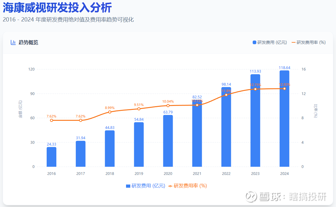 数据来源海康财报:2017-2024年研发费用及研发费用率
