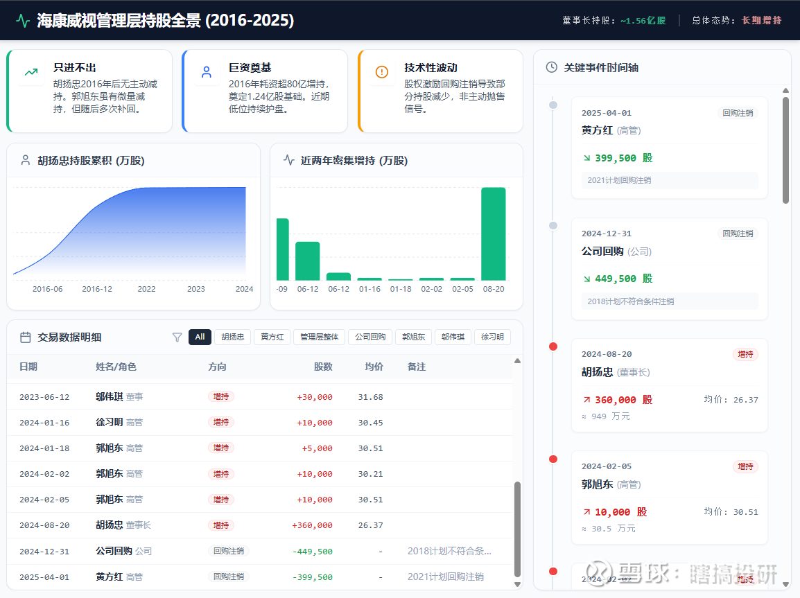 2025年的现实呢?8年过去了,海康经历了股价的大起大落,管理层是套现离场了,还是继续和公司绑在一起?