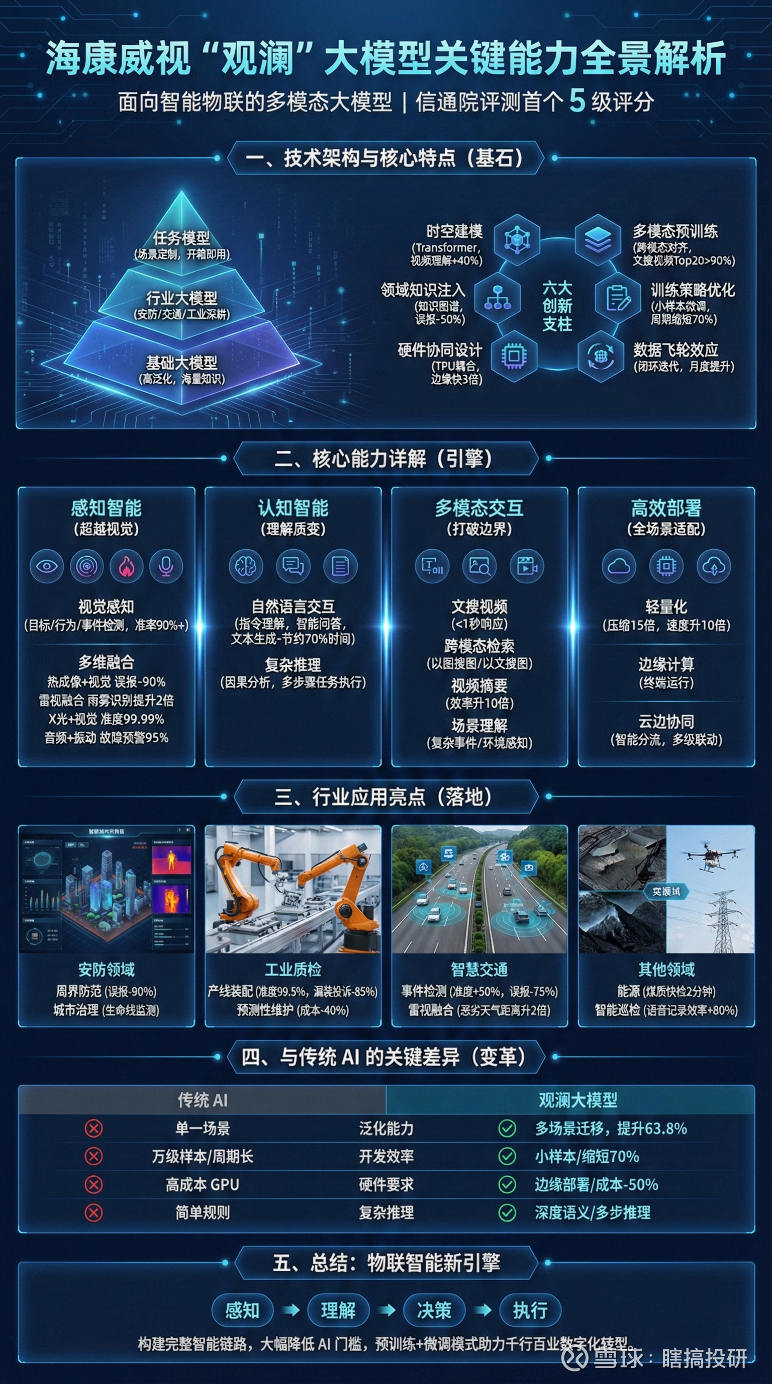 更重要的是,研发的方向发生了深刻的变化。当年海康研发“领先对手2年” ,那主要是指应用层的算法。今天的海康,已经构建了从底层芯片设计、感知技术、AIoT操作系统到上层算法的全栈能力。
