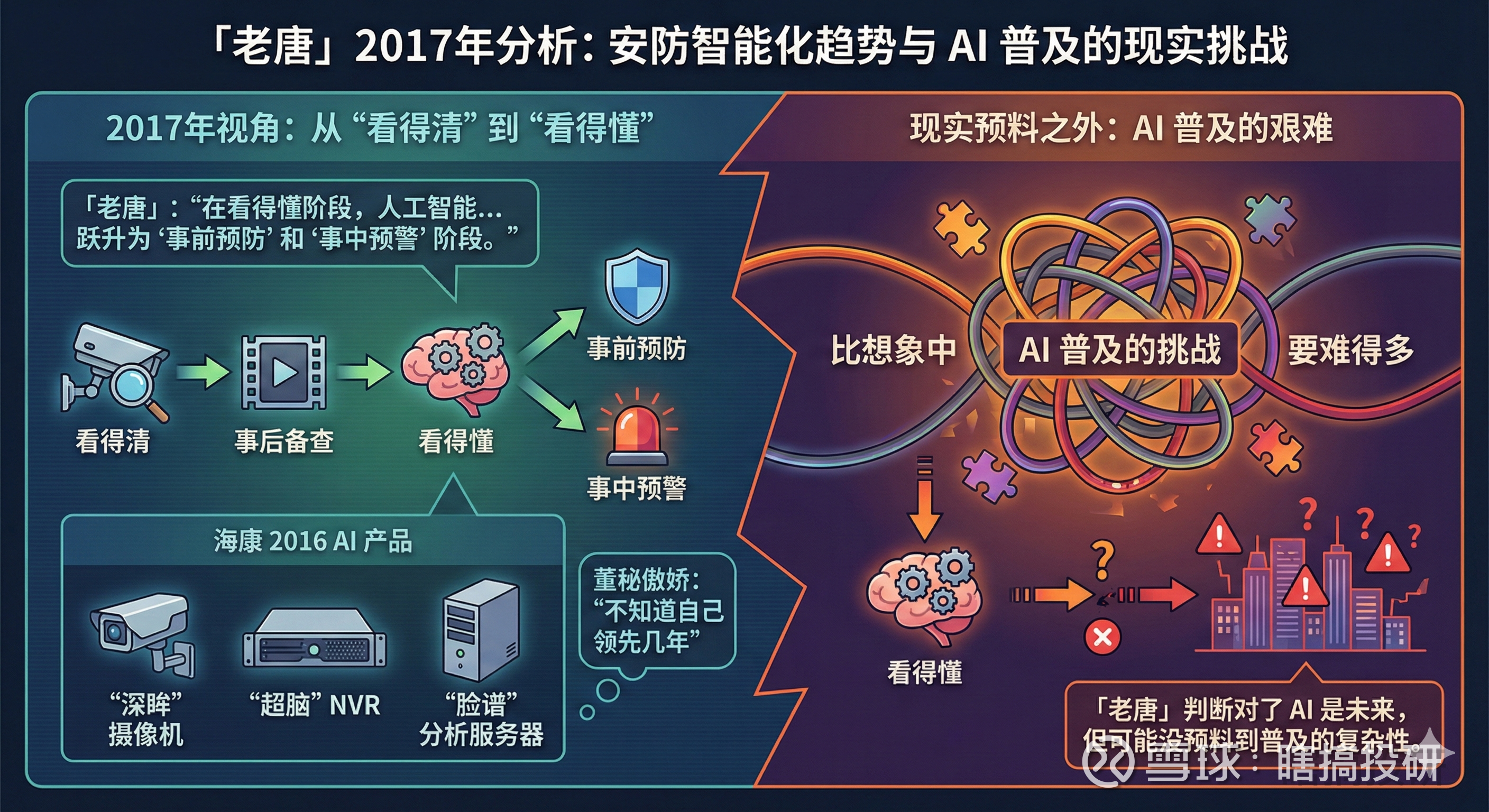 「老唐」在2017年就分析过,安防行业从“看得清”到“看得懂”的智能化趋势: