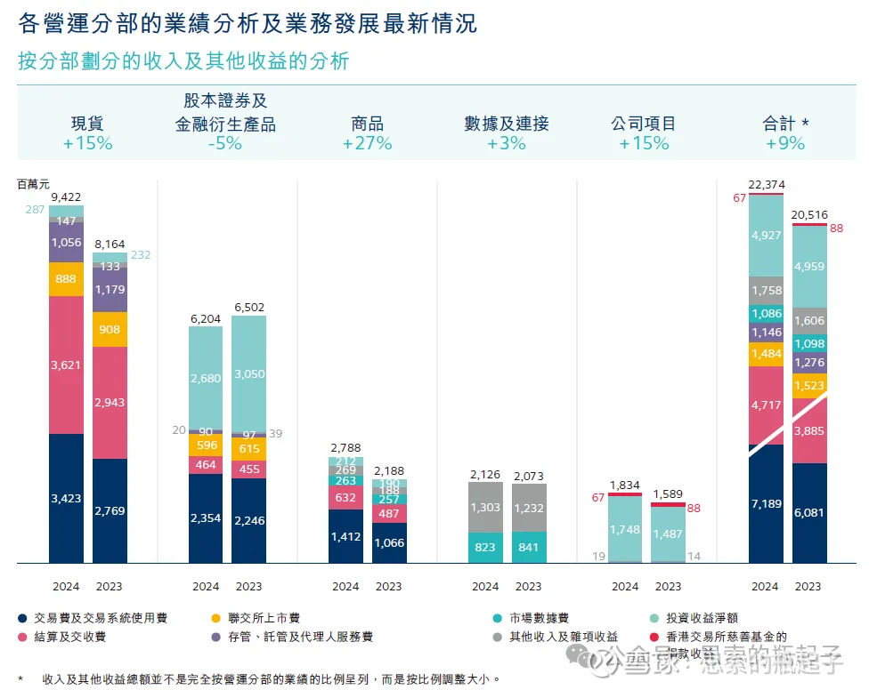港交所提供的是撮合交易以及结算的功能,因此交易费、交易系统使用费、结算交收费用,是它最基本的利润来源。