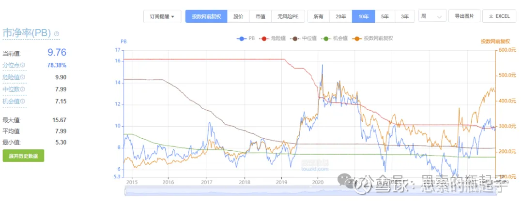 公司PB为9.76倍,处于过去10年历史78.38%的分位点,从底部快速上涨后,来到了一个相对较高的位置。图中很明显能看出,PB指标与公司股价的同步性更强,参考价值更高。$香港交易所(00388)$ $恒生指数(HKHSI)$ #“牛市旗手”再走强,中信证券大涨#
