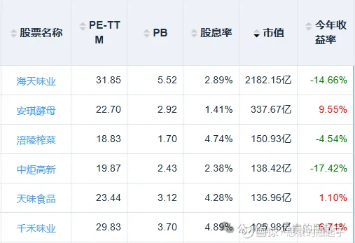 从估值来看,海天味业依然是最贵的,无论是PE还是PB,都比其他公司高出一大截,像千禾味业的股息率都快接近5%了,而海天目前不到3%。未来调味品行业可能也要慢慢变成低成长红利股了。