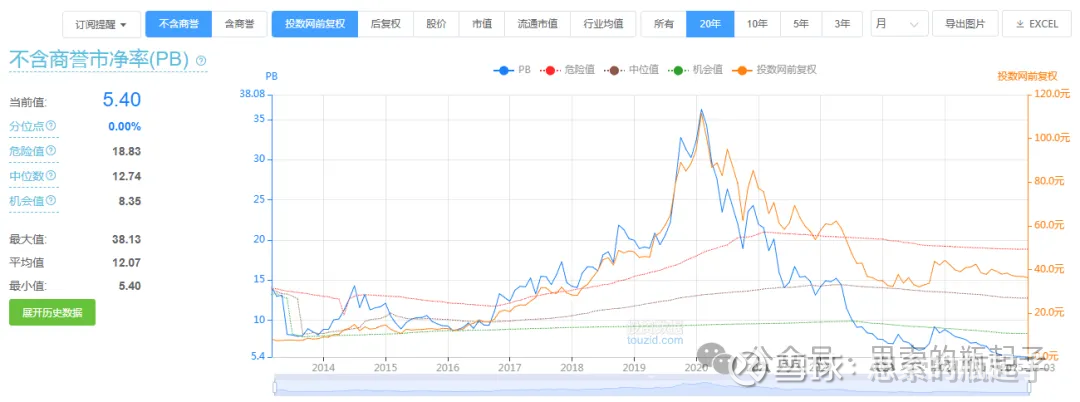 当前公司不含商誉PB指标为5.4倍,倒是历史最低水平,但问题是5.4倍这个绝对值,其实并不算便宜,相当于用5.4元只能买到公司价值1元的净资产,就看你认为,海天这个品牌,值不值得5.4倍的投资溢价了。