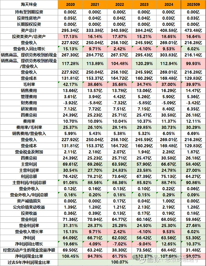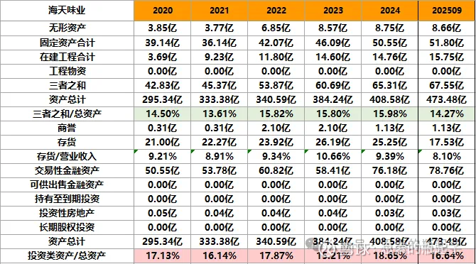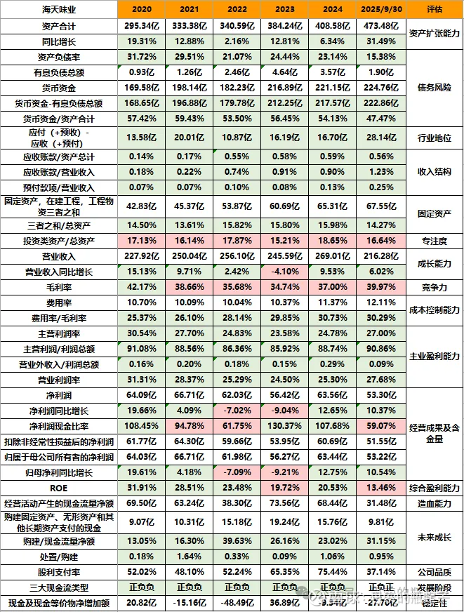 哪怕在2022-2024年熊市,公司股价下跌期间,海天味业的总资产与净资产依然在始终成长,并且整体资产负债率呈下降趋势。