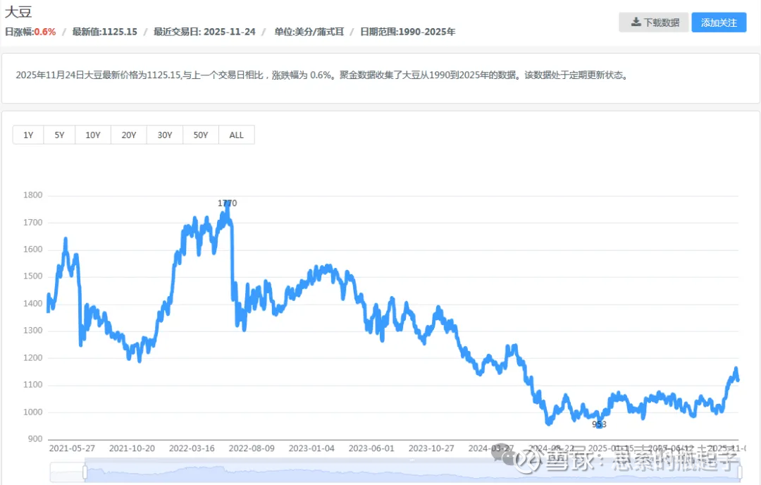 酿造酱油的主要原材料是大豆,这里我给大家查一下大豆过去5年间的价格走势。
