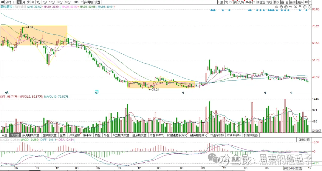 技术分析我更看重长期的周线走势,之所以加上这部分内容,并不代表我抛弃了价值投资,而是为了更好的寻找买点与卖点,提高择时准确性。