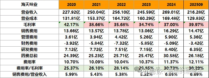 2021-2023年公司营业收入几乎停止增长,因此自24年起,海天增加了销售费用的投入,费用率与销售费用率开始上升,换来营业收入重新上涨。同时由于原材料价格下降,公司营业成本增速小于营收增速,毛利率又重新开始增长。