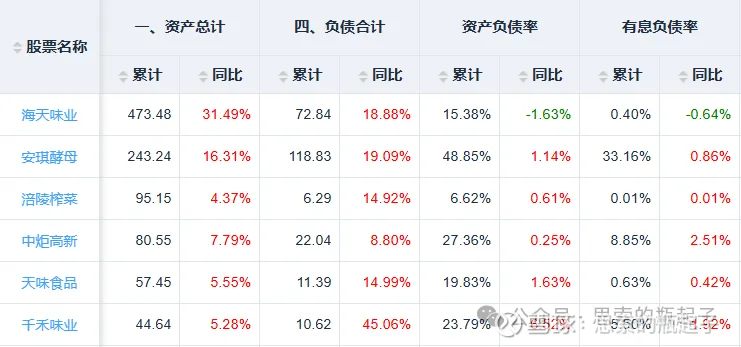 从资产负债端来看,海天味业的资产负债率相对较低,几乎没有有息债务,当然行业中的其他公司负债也不高。