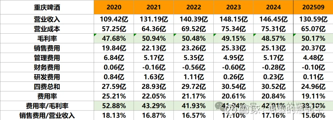 25年三季报珠江啤酒与重庆啤酒的毛利率均超过了50%,净利润率依然是重庆啤酒最高。
