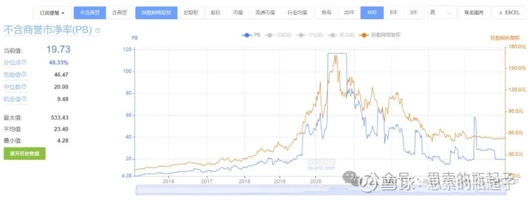 当前公司不含商誉PB指标为19.73倍,绝对数值相当之高,我也没看过这样的,主要是净资产太少导致的。